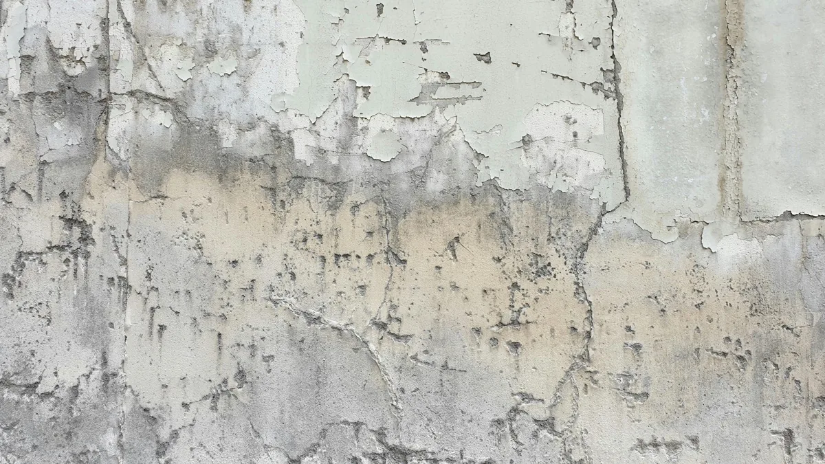 She's got diagonal cracks that are visibly wider at the top than the bottom. The wall sections on either side of the crack are at different levels now. Doors upstairs don't close right anymore. That's active settlement, and it's expensive to fix.